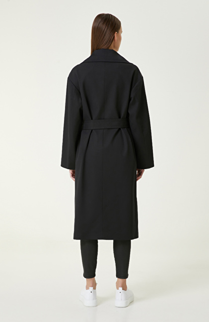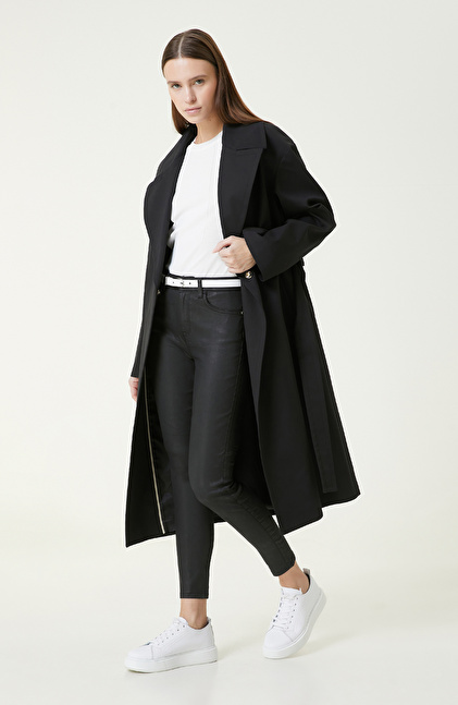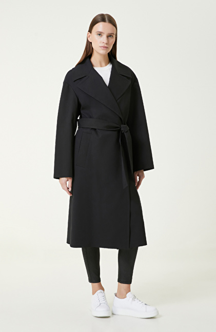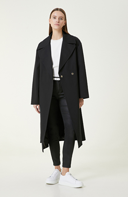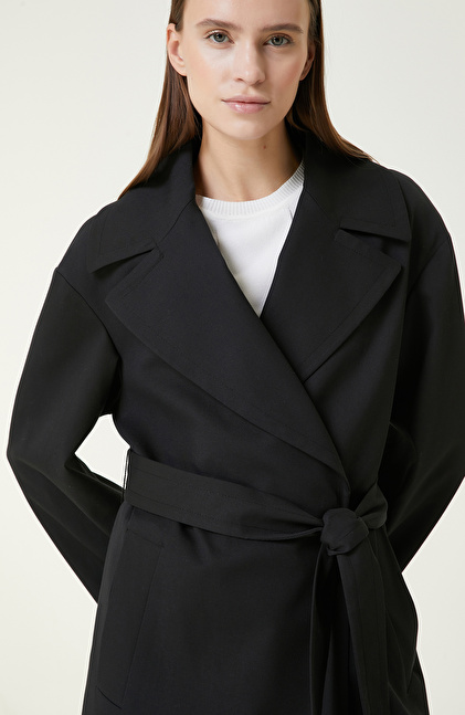 Regular Fit; Ceket Yaka; Uzun Kol; Mid Boy Pardösü; Kruvaze Kapamalı; Kemerli; Cepli