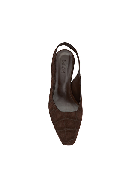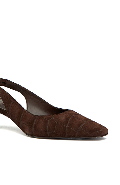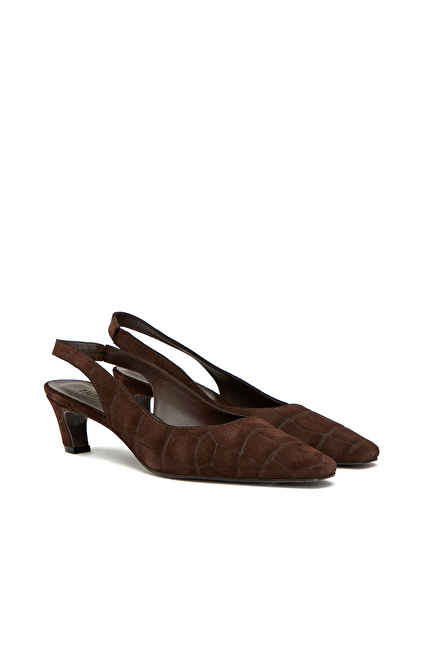 Acı Kahve Kroko Baskılı Deri Topuklu Ayakkabı