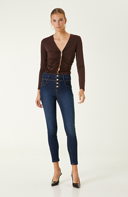 Acı Kahve Örme Bluz, NetWork Smart Casual koleksiyonunda yer alır. Cesur ve ikonik tarza sahip kadınlara hitap eden bluz, yenilikçi tasarımı ile öne çıkar. Ön kısmında bulunan agraf pencere, kombinlerinize özgün bir dokunuş yapar ve feminen bir görünüm elde etmenizi sağlar. Lüks moda çizgisi ile konforu bir araya getiren bluz, şık görünmenizi sağladığı gibi hareket özgürlüğü de kazandırır. Kış sezonuna uygun kaliteli kumaşı da gün boyu konforunuz ve üşümemeniz için idealdir. Ayrıca üzerinizde elegan bir duruş sergiler ve stilinizi bir üst seviyeye çıkarır. Kahverengi bluz ile lacivert dar pantolon, siyah stiletto kombini yaparak feminen casual bir görünüm elde edebilirsiniz.