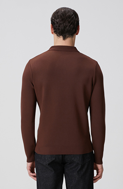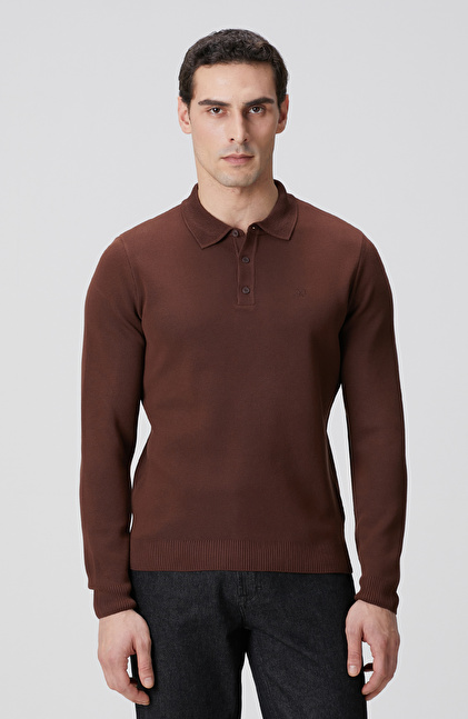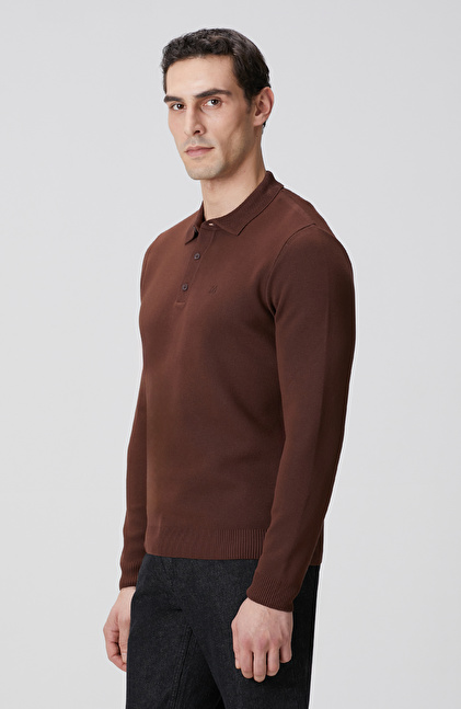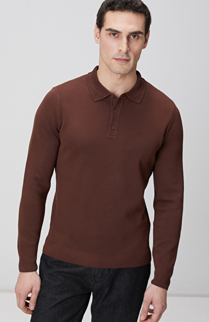 Acı Kahve Polo Yaka Uzun Kol Pike Örgü Kazak
