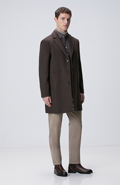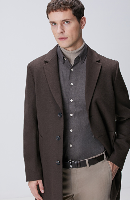 Acı Kahve Yün Karışımlı Palto