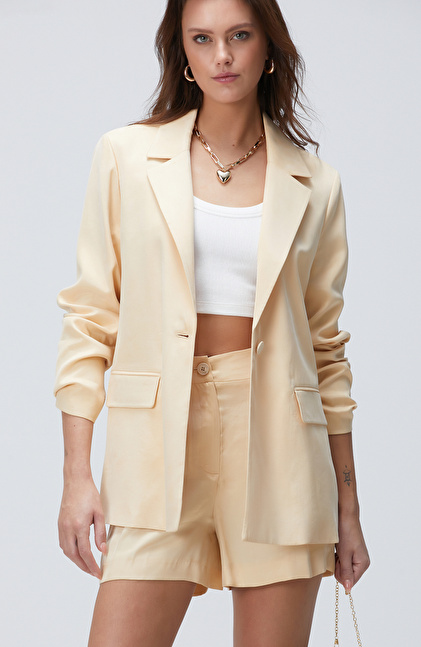 Açık Bej Cupro Blazer Ceket