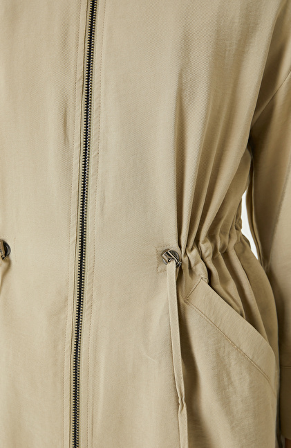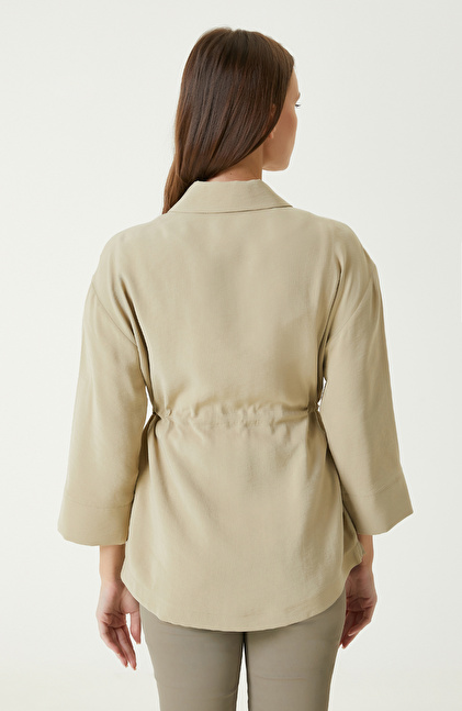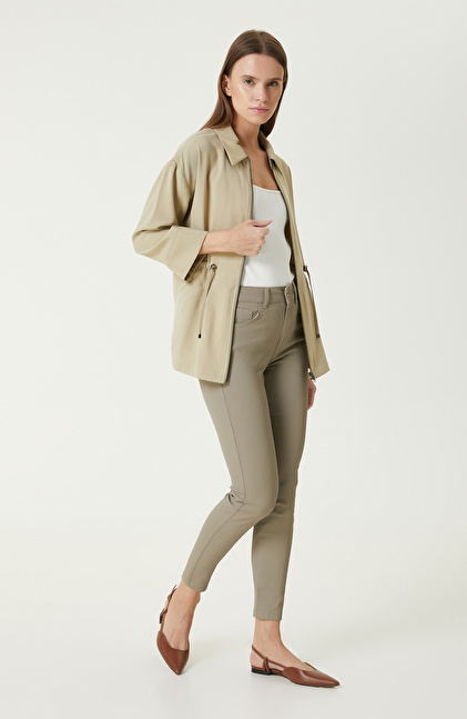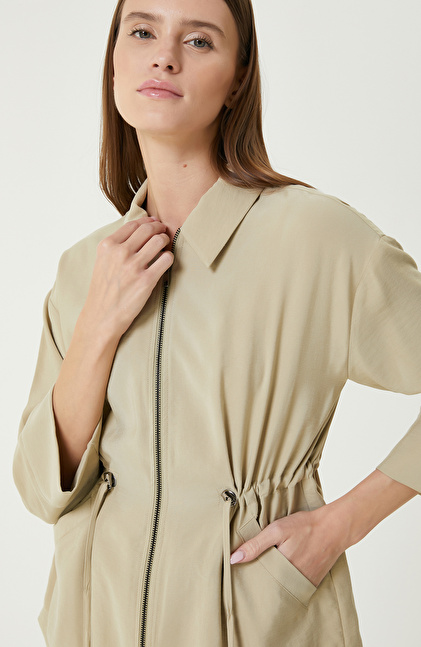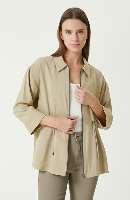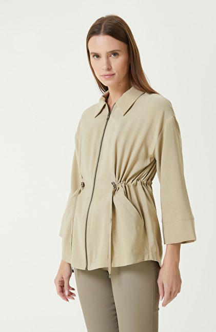 Basic Fit; Gömlek Yaka; Truvakar Kollu; Astarsız Ceket; Beli Lastik Detaylı; Fermuar Kapatmalı; 2 Cepli