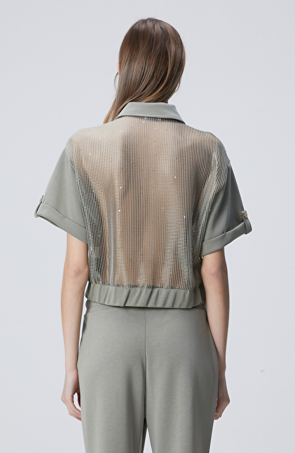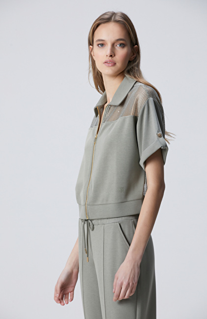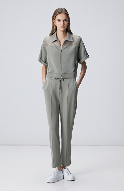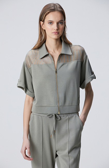 Açık Haki File Garnili Modal Karışımlı Sweatshirt