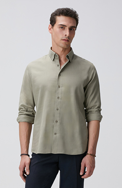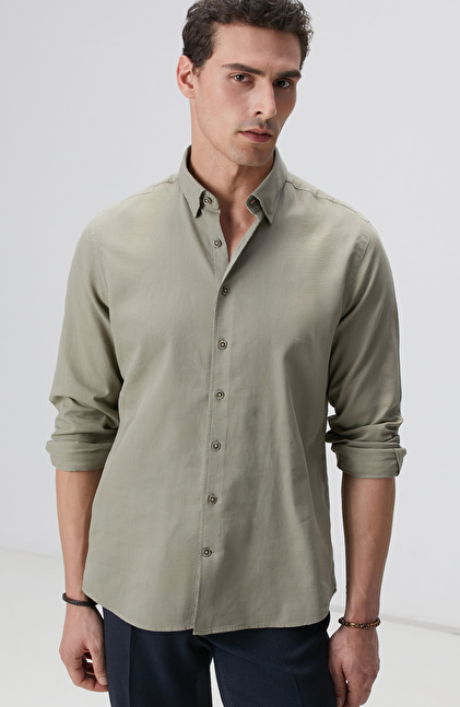 Açık Haki Mikro Desenli Gömlek
