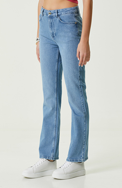 Açık İndigo Yüksek Bel Denim Pantolon