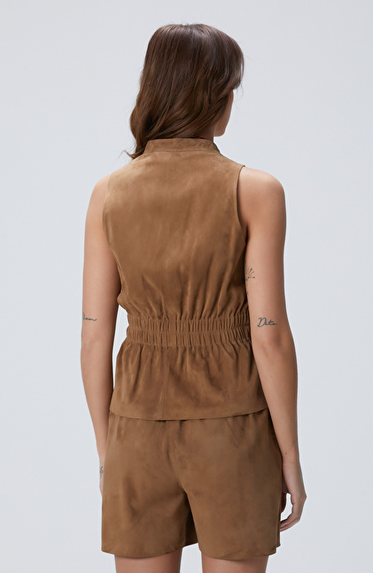 Açık Kahverengi Deri Yelek