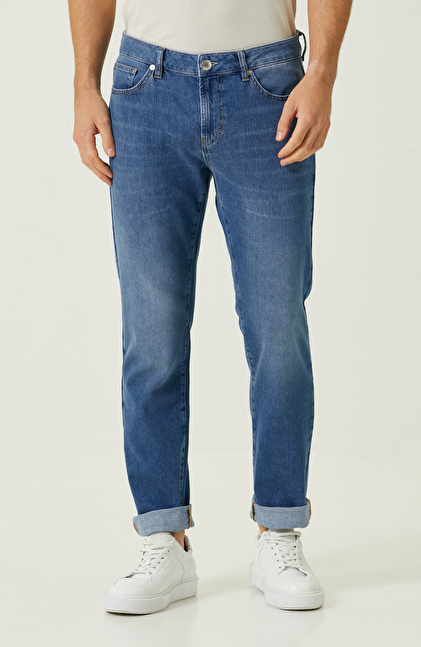 Denim; Düz Paça; Slim Fit; 5 Cep Detay; Normal Bel