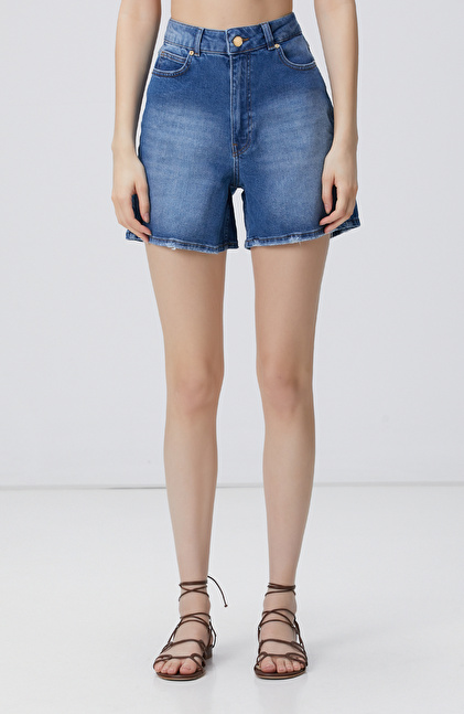 Basic Fit; Normal Bel; Kısa Denim Şort; 5 Cepli