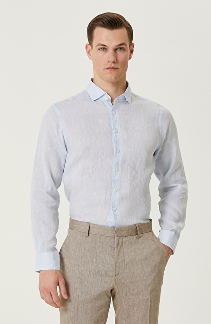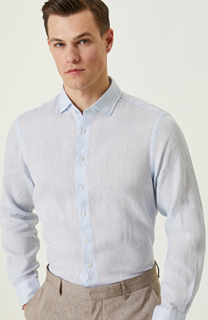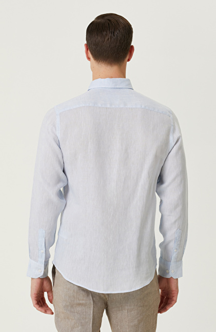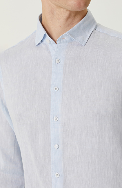 Açık Mavi Keten Gömlek