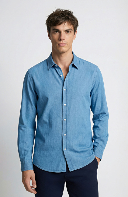 Açık Mavi Lyocelli Denim Look Gömlek