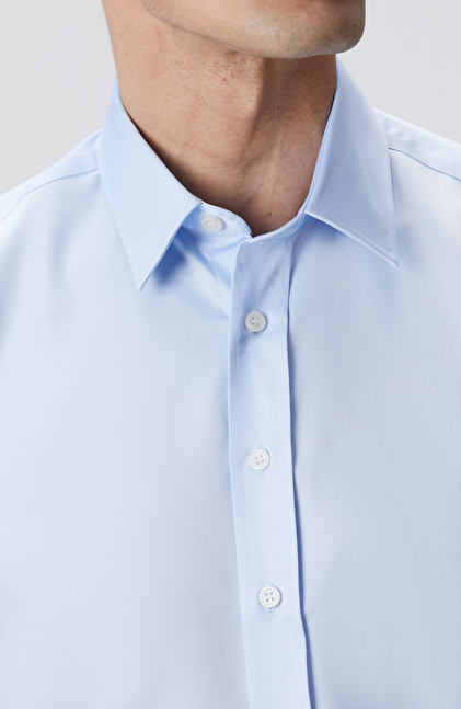 Açık Mavi Non-Iron Saten Gömlek