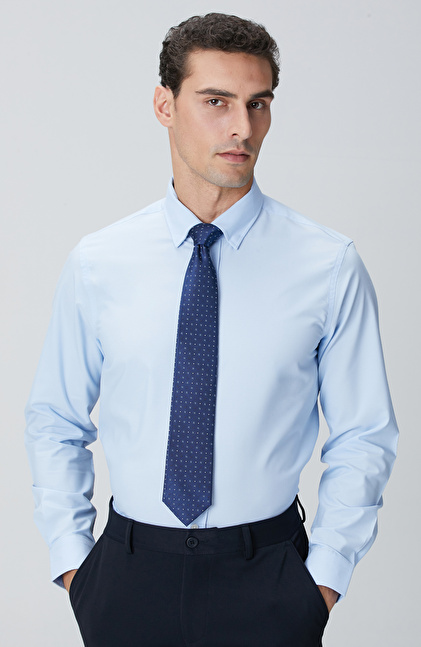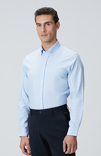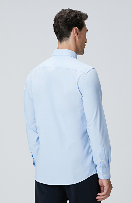 Açık Mavi Slim Fit Lycralı Cotton Petek Desen Gömlek