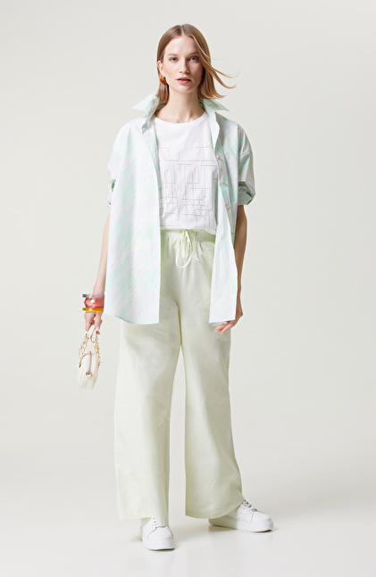 NetWork’ün trendleri takip eden zamansız kadınlar için tasarladığı Açık Sarı Dokuma Bol Paça Pantolon, yaz sezonunun özgün parçaları arasında yer alır. Yüksek kalitede dokuma kumaştan üretilen pantolon, sıcak yaz günlerinde ekstra rahatlık sunar. Freshener serisinin smart casual tarzını yansıtan beli büzgülü tafta pantolon, sosyal hayatta aktif olan NetWork kadınlarına uyum sağlar. Hem şık hem spor tarzdaki bu tasarımı beyaz baskılı t-shirt ya da açık renk tonlarda gömlek, beyaz sneaker’lar, kalın renkli bilezikler ve kapitoneli omuz çantası ile kombinleyebilir, iddialı bir stil oluşturabilirsiniz.