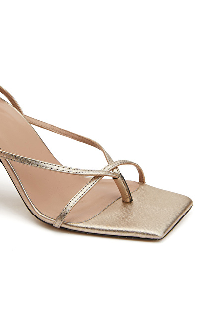Altın Rengi Kadın Deri Sandalet