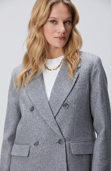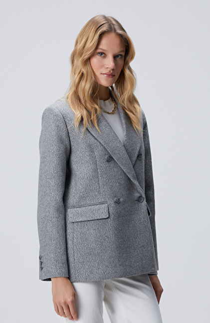 Antrasit Balıksırtı Desenli Kruvaze Ceket