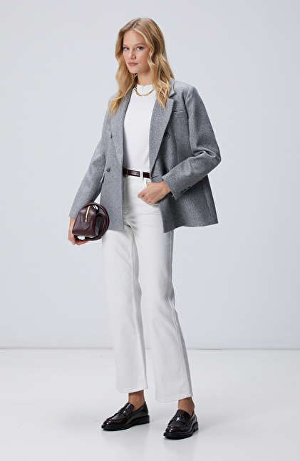 Basic Fit; Kruvaze Yaka; Uzun Kol; Dokuma Ceket; Balıksırtı Desenli; Cepli