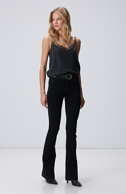 NETWORK Antrasit Dantel Detaylı İnce Triko Atlet