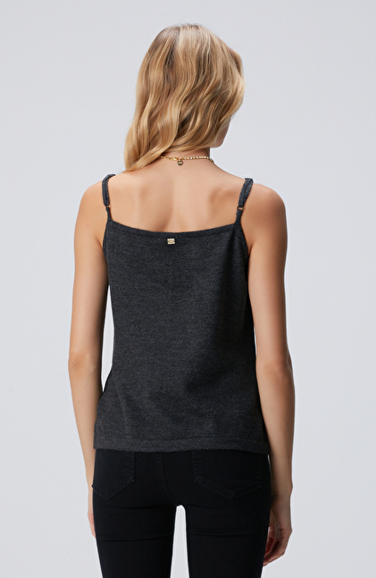 Antrasit Dantel Detaylı İnce Triko Atlet