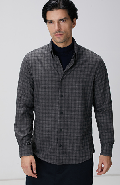 Antrasit Ekose Desenli Gömlek