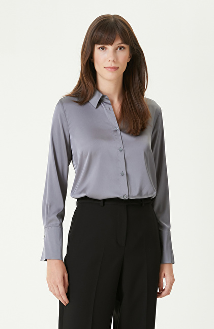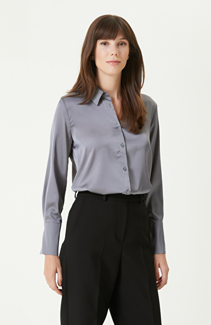 Basic Fit; Gömlek Yaka; Düğme Kapatmalı; Düz Renk Gömlek