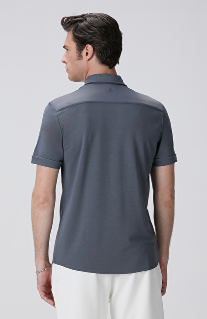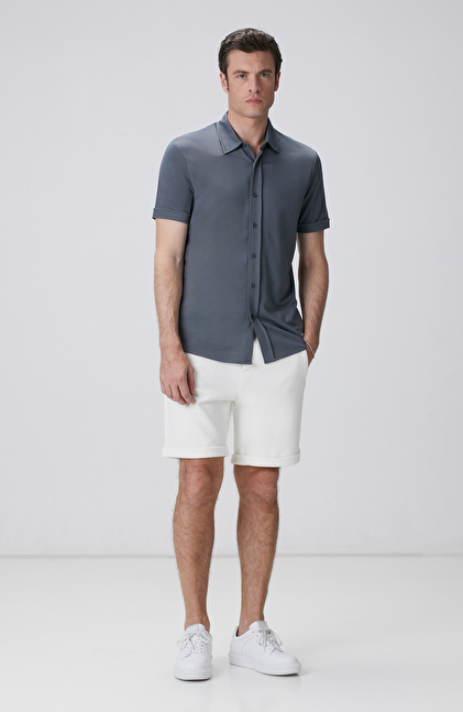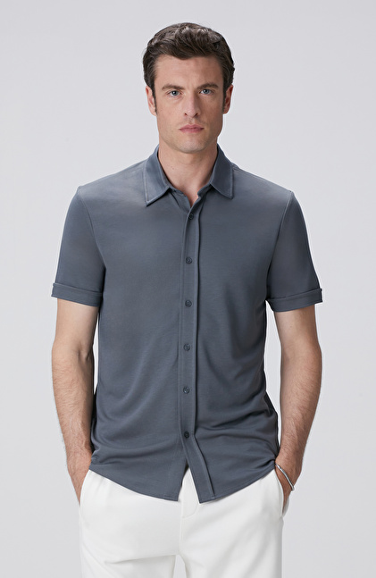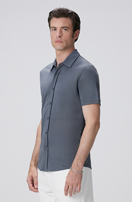 Slim Fit; Apaş Yaka; Kısa Kol; Örme Gömlek