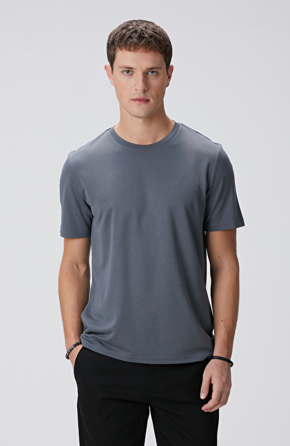 Slim Fit; Bisiklet Yaka; Pike Desenli; Basic T-Shirt