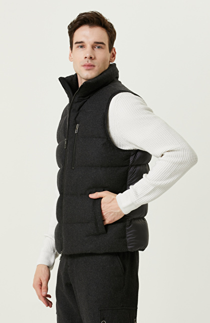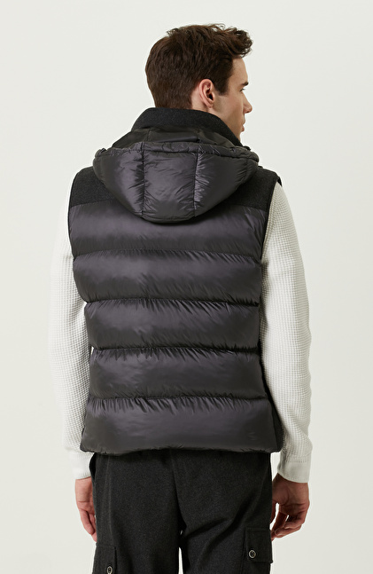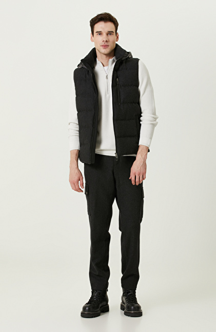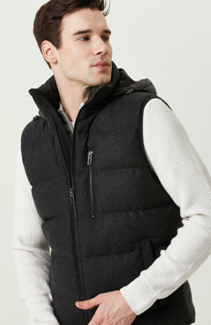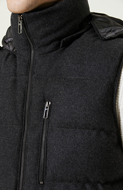 Antrasit Yan Cepli Kapüşon Yaka Yelek