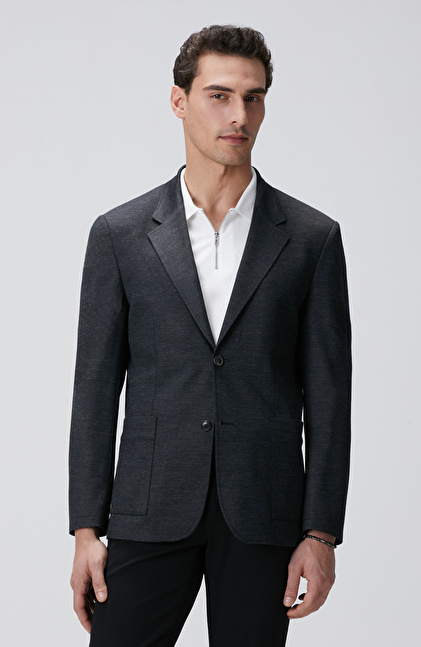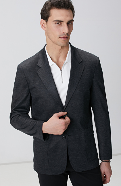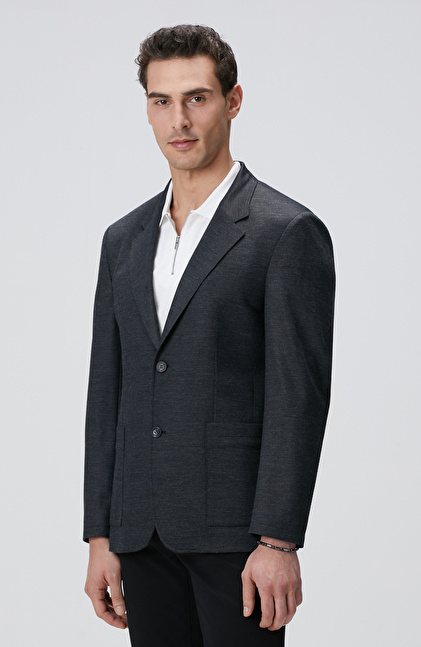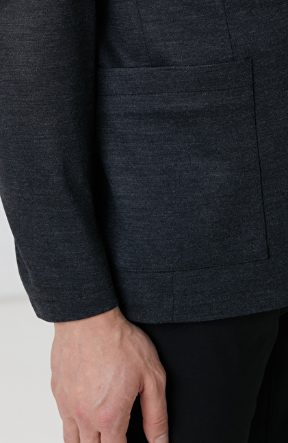 Antrasit Yün Karışımlı Örme Ceket