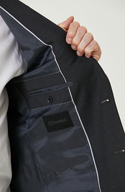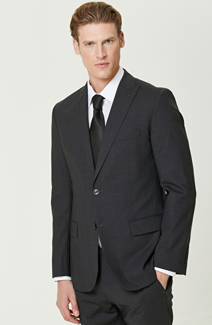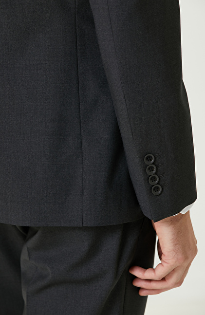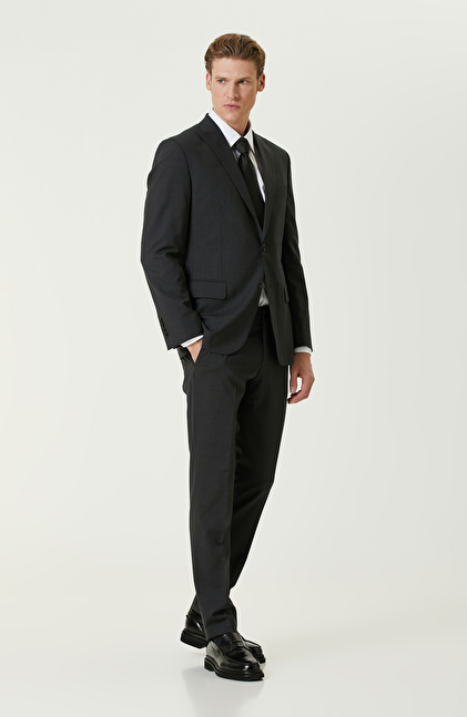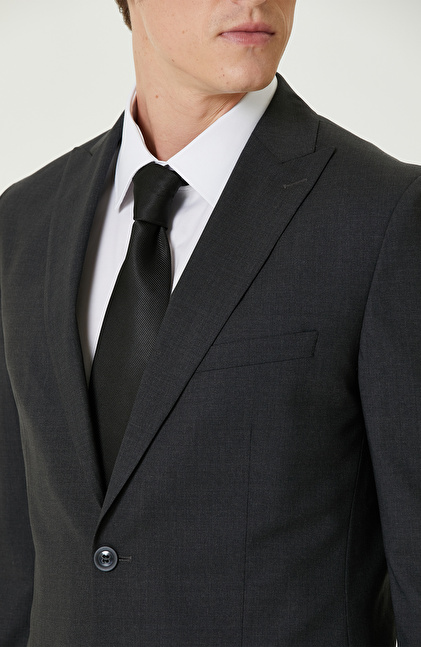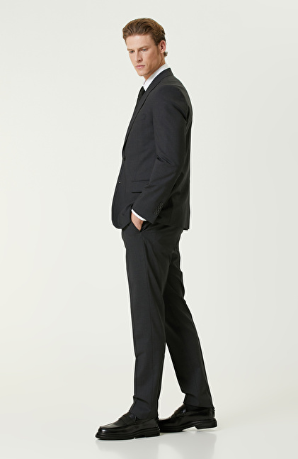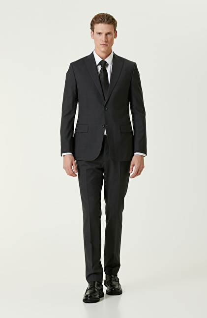 Antrasit Yün Karışımlı Piklapel Yaka Takım Elbise