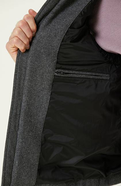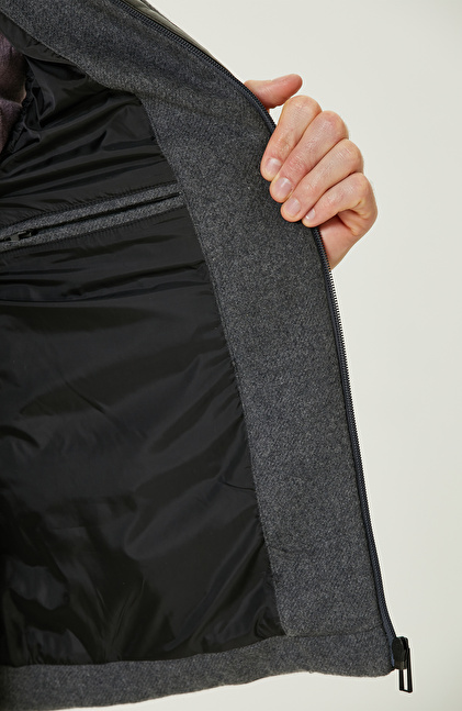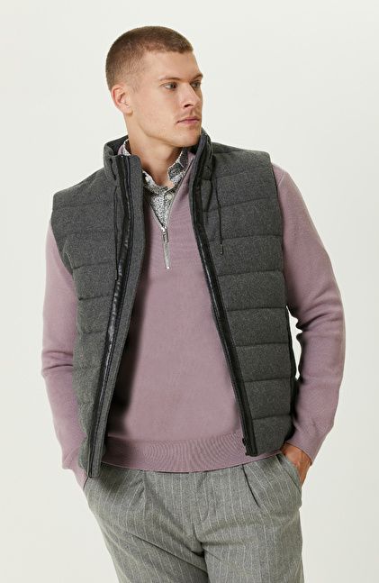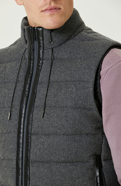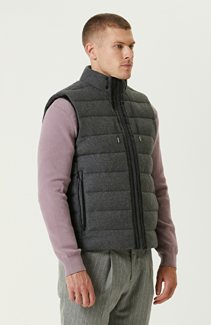 Antrasit Yün Karışımlı Puffer Casual Yelek