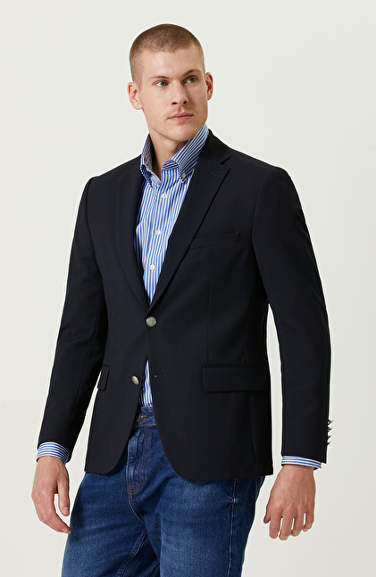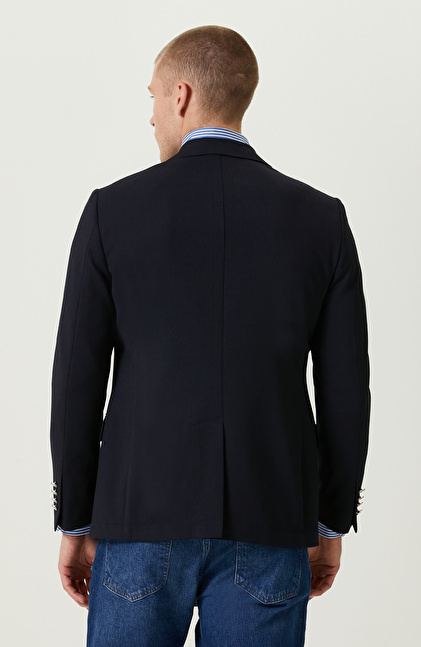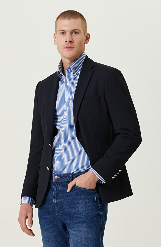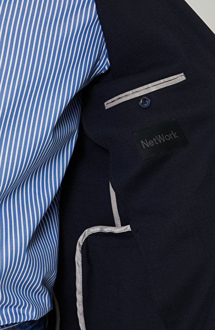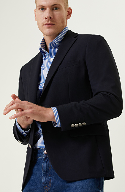 Armürlü Mono Yaka Lacivert Ceket