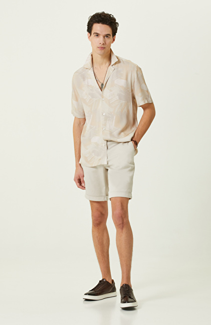 Bej Baskılı Gömlek