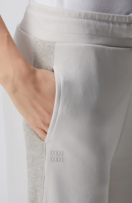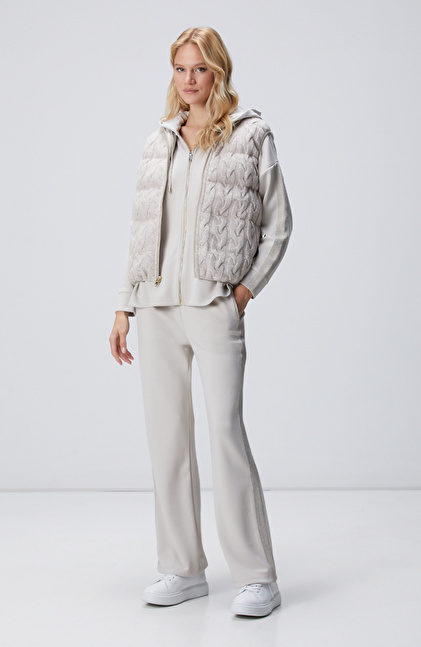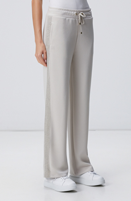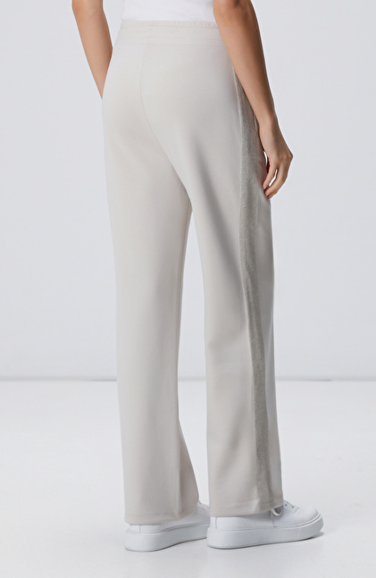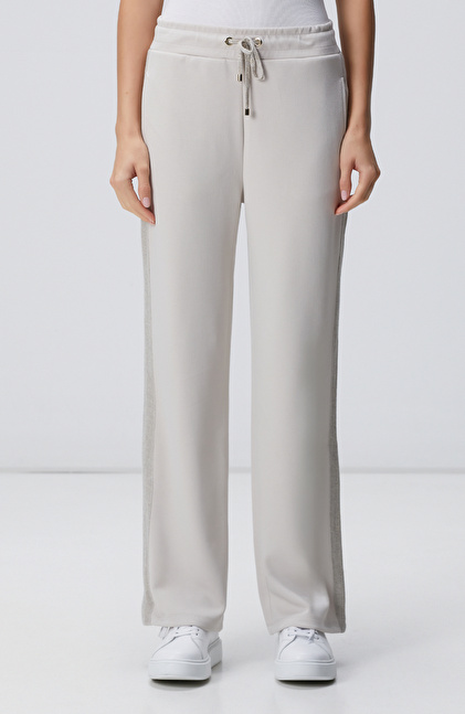 Bej Beli Kordonlu Triko Garnili Eşofman Altı