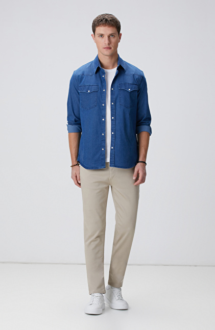 Slim Fit; Normal Bel; Casual Pantolon; Düz Paça; 5 Cepli