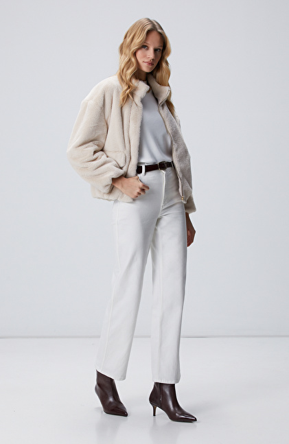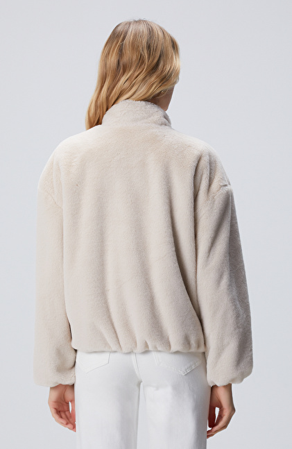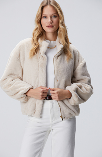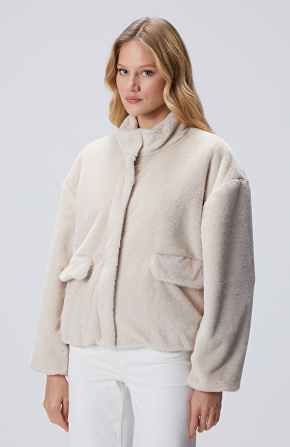 Bej Cep Detaylı Suni Kürk Mont