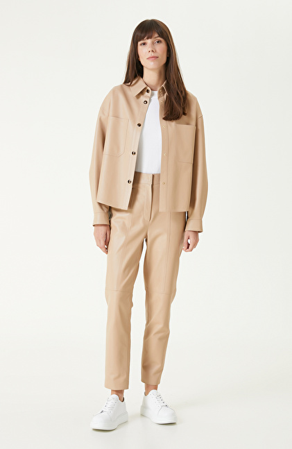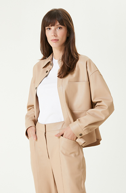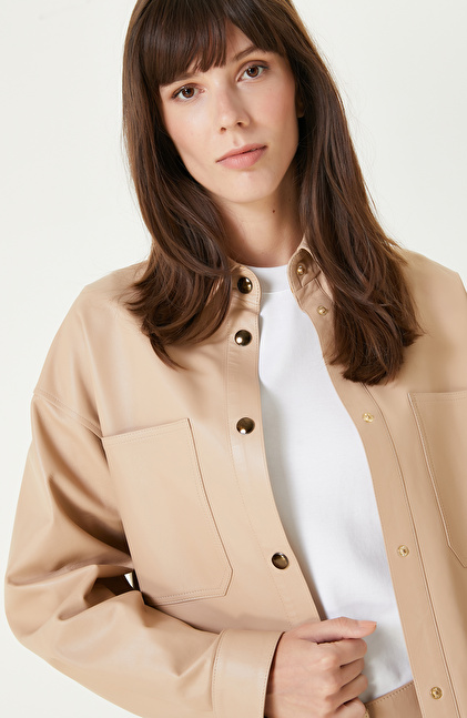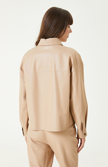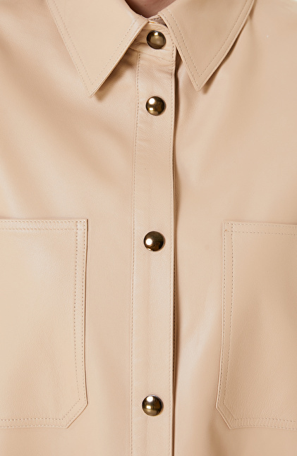Bej Cepli Deri Gömlek