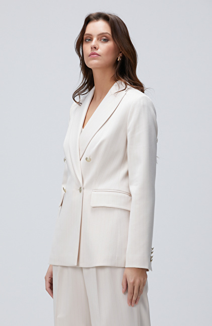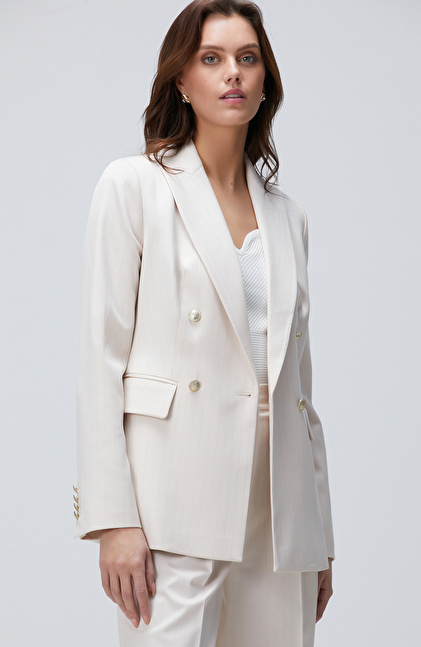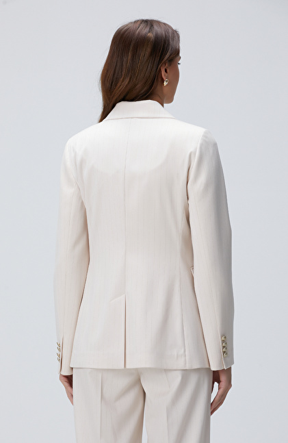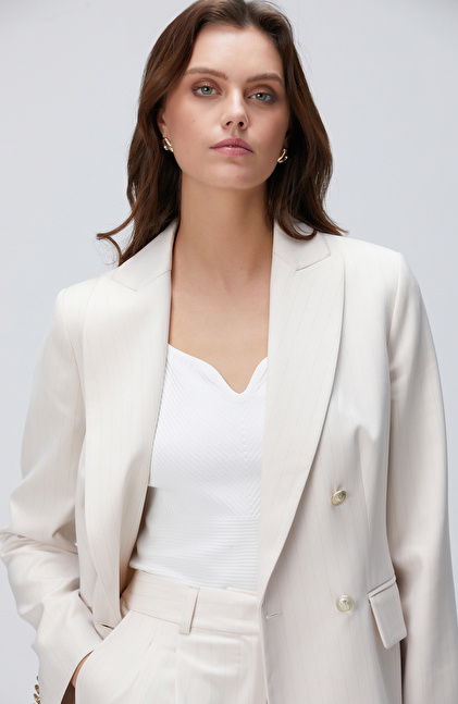 Bej Çizgili Blazer Ceket