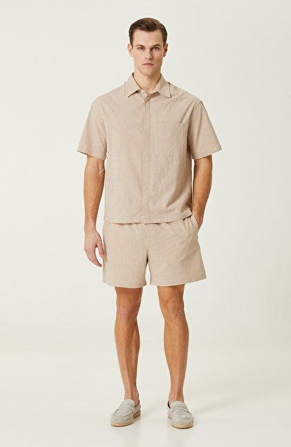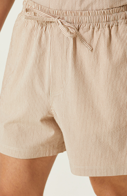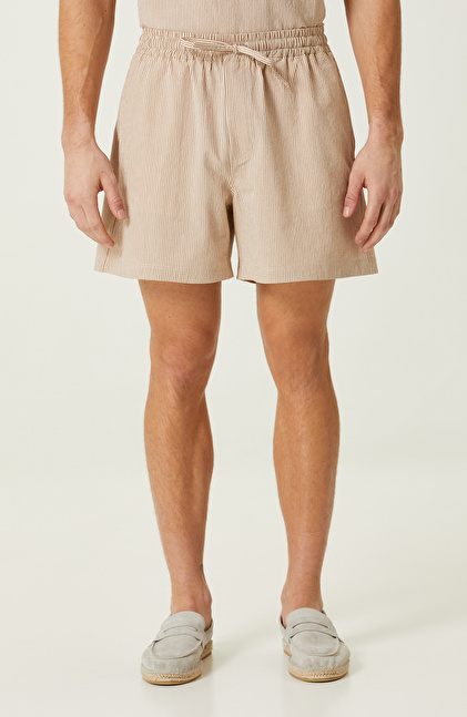 Comfort Fit; Lastikli Orta Bel; Düz Paça; Diz Boy; Dokuma Şort; Gofreli Çizgili; Yan Cepli