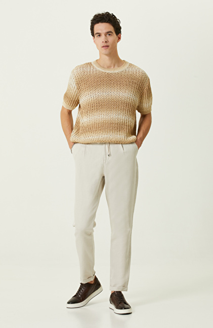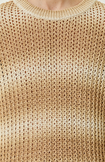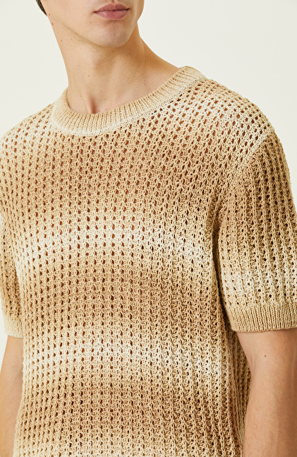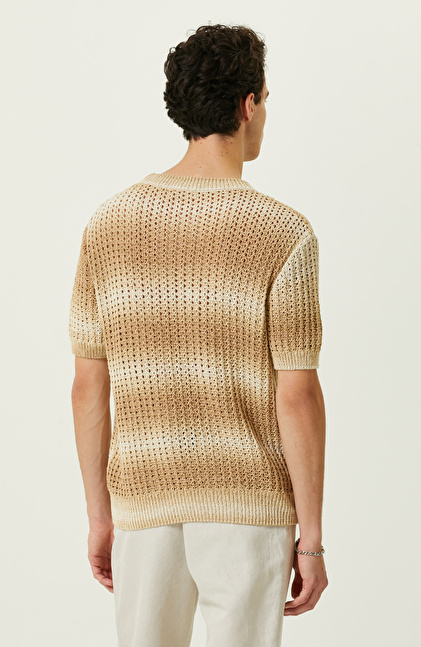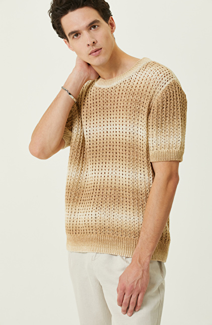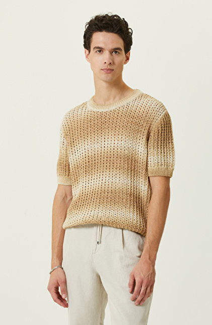 Bej Degrade Kısa Kollu Triko Kazak