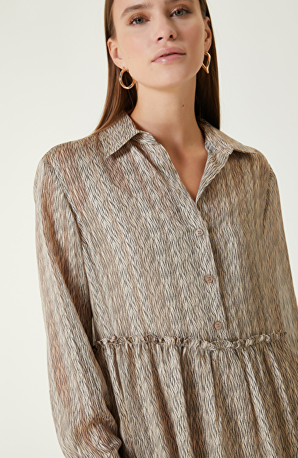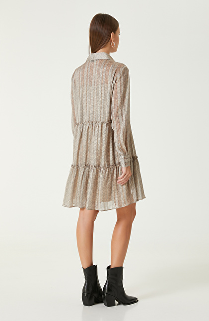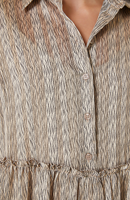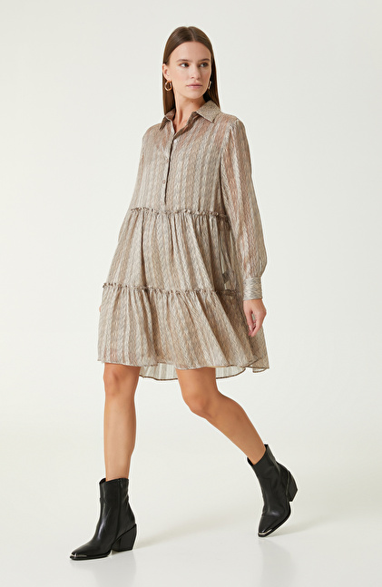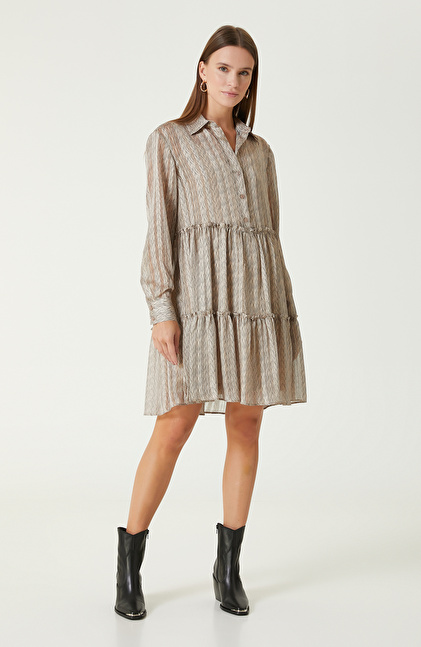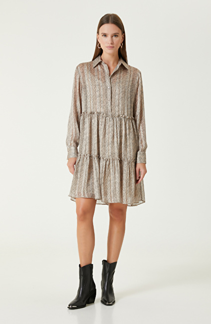 Bej Desenli Mini Elbise