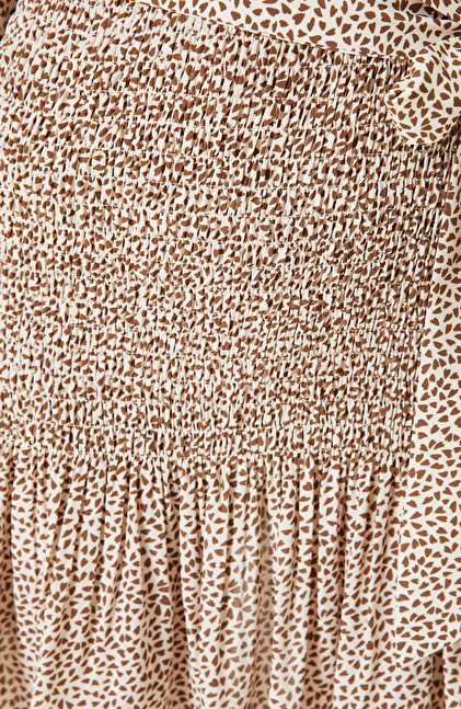 Bej Desenli Mini Elbise