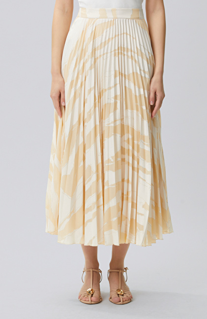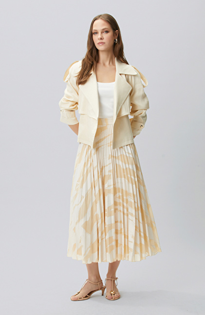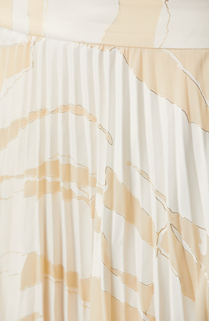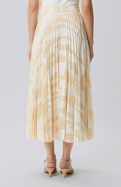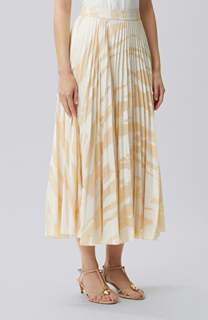 Bej Desenli Pileli Etek