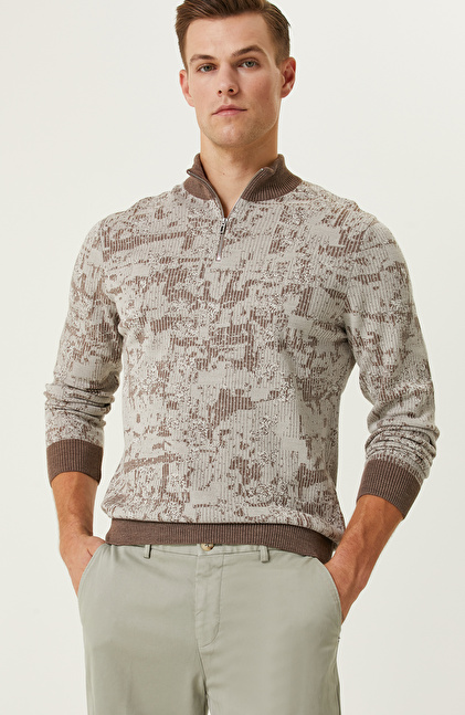 Soğuk havalarda rahatlıkla kullanabileceğiniz Bej Desenli Triko Kazak, birçok farklı renk tonuyla uyumlu olarak kombinleyebileceğiniz seçeneklerdendir. Böylece hem dayanıklılık sunan hem de sizi sıcak tutan bu parça ile hareket özgürlüğü elde edebilirsiniz. Dik yaka tasarımı ve fermuarlı yakası da soğuk havalarda fonksiyonel kullanım açısından idealdir. NetWork Smart Casual koleksiyonunda yer alan kazak, şehirli ve sokak modasına uyum sağlayan erkeklere hitap eder. Desenli tasarımı ile kombinlerinize sofistike dokunuş yapan model, stilinizi özgün ve ikonik bir noktaya taşır. Bej renge sahip desenli kazağı; açık yeşil pantolon, gri süet bot ve kahverengi kapitoneli montla kombinleyerek lüks bir görünüm oluşturabilirsiniz.