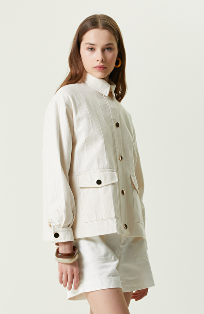 Detaylarla zenginleştirilmiş işlevsel tasarımları seven kadınların tercihi Bej Dik Yaka Mont, NetWork'ün Denim I serisinin smart casual stilde tasarlanan parçaları arasında yer alır. Kendiliğinden çizgili formu, çıtçıt kapama detayı ile yenilikçi ve zamansız yaz kombinleri oluşturmanızı sağlar. Kapaklı cepler de mont gibi çıtçıt kapamaya sahiptir, son derece kolay açılıp kapanabilir. Böylece kişisel eşyaları güvende taşımanız mümkündür. Dik yaka detayı hem stil hem de rüzgardan korunmanız açısından oldukça işlevseldir. Şık stiller elde edebileceğiniz bej mont, regular fit kalıbı sayesinde her vücut tipine uyumludur. Bej montu, indigo jean pantolon, kahverengi triko kazak, camel süet loafer ve süet askılı çantalarla kombinleyebilirsiniz.
