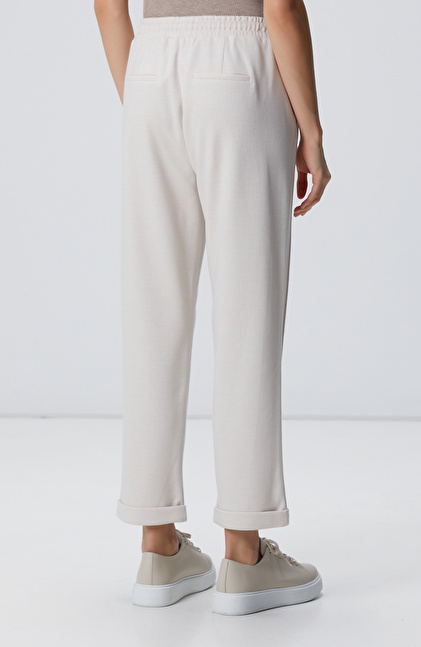 Bej Dikiş Detaylı Casual Pantolon