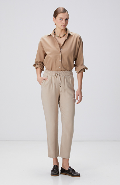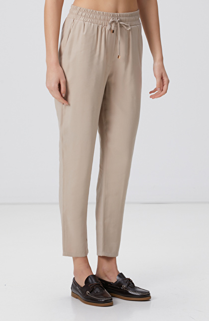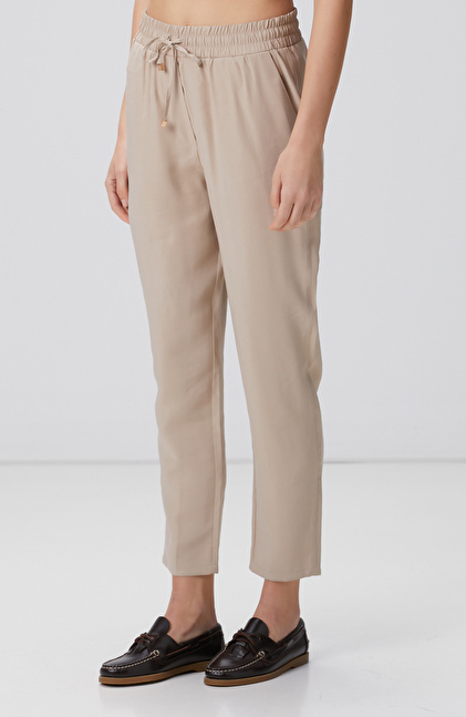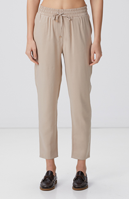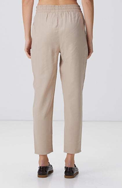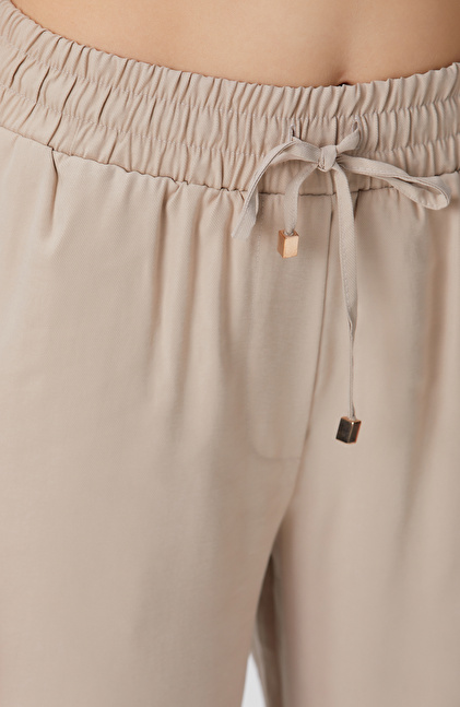 Bej Diyagonal Desenli Pantolon