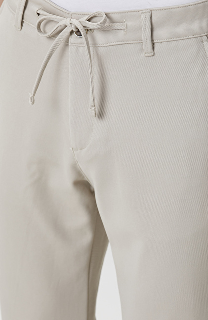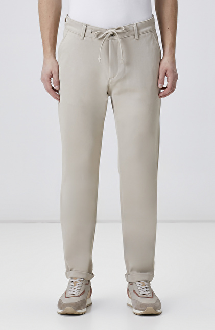 Bej Duble Paça Diyagonal Örme Jogger Pantolon