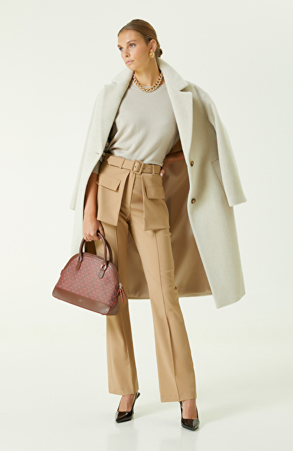 NetWork Smart Casual’ın zamansız moda çizgisini yansıtan Bej Flare Paça Pantolon, stil sahibi kadınlara hitap eder. Sonbahar ve kış koleksiyonunun sevilen parçası, iddialı ve basic stili bir araya getirir. Yüksek beli, bol paça kesimi ile modern ve şehirli tarzı yansıtır. Bej renge sahip pantolon, özel davetlerden ofise kadar her ortamda stilinizi yansıtır. Kemerde yer alan detaylar da iddialı bir görünüm ortaya koyar. Siz de bol paça pantolonu; ekru kazak, bej v yaka kolsuz yelek, vizon kemerli manto, siyah stiletto, monogram fuşya çanta ve gold aksesuarlarla birleştirerek casual kombinler oluşturabilirsiniz.
