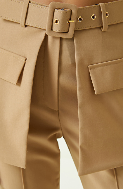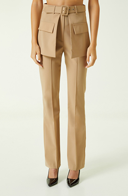 Bej Flare Paça Pantolon